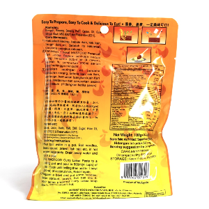 产地:马来西亚;成份:; 香料,葱,蒜,盐,辣椒,糖,植物油,味精(E621和保鲜剂(E211); 煮法:; 将定好咖哩叻沙酱料倒进锅里炒香,加入800ml或4杯清水煮沸,然后加入1杯 (200gm) 浓椰浆,待沸,另煮沸 一锅水将面、豆芽、鱼饼、鱼丸、豆卜及鲜蛤烫熟后沥干,将之前准备好的汤料淋在面和食料上,加少许叻沙叶,趁热食用