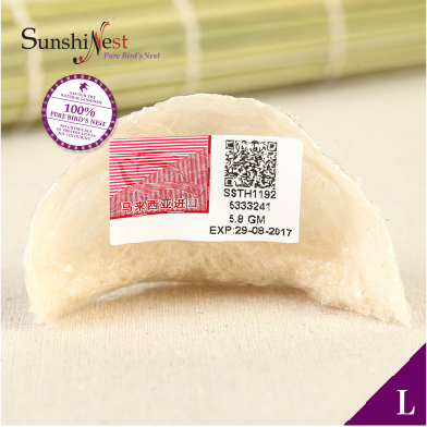 产品总重量:22克; 产地: 马来西亚; 品牌: SunshineNest; 系列: 平盏; 规格型号: L; 重量: 5.0-6.4 (克/盏); 标签代码: SSTH; 配料表; 燕窝品质:金丝燕; 燕窝形状:燕盏; 规格:11克; 保质期:3年; 食品添加剂:无任何添加剂; 采摘地点:屋燕; 适用对象:全部适用; 是否含糖:无糖; 是否为有机食品:否; 燕窝颜色:白燕/官燕; 包装方式:包装;储藏方法:避免阳光直晒,存于阴凉干燥处